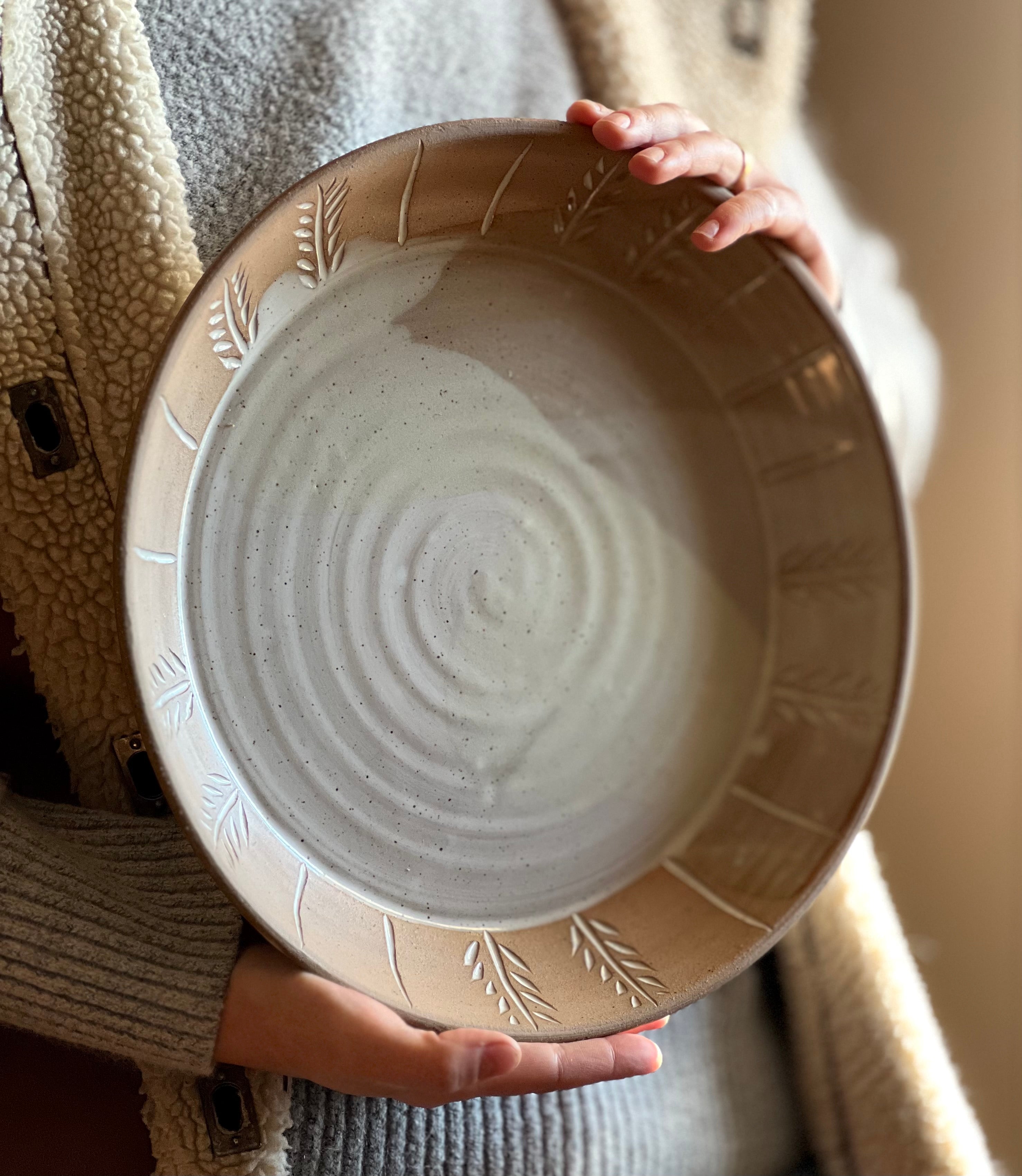 The tactile experience of using something unique & handmade adds a layer of richness and meaning to simple, everyday rituals. I make my pots to intentionally engage the senses - varied textures will tickle your fingers, handmade details and the warm colors of clay will delight your eyes. The individual nature of these pieces reflects the individuality of the person using them—bringing a sense of self and expression to your home. These are pieces made to be used, to be felt, and to bring warmth and artfulness into your life.