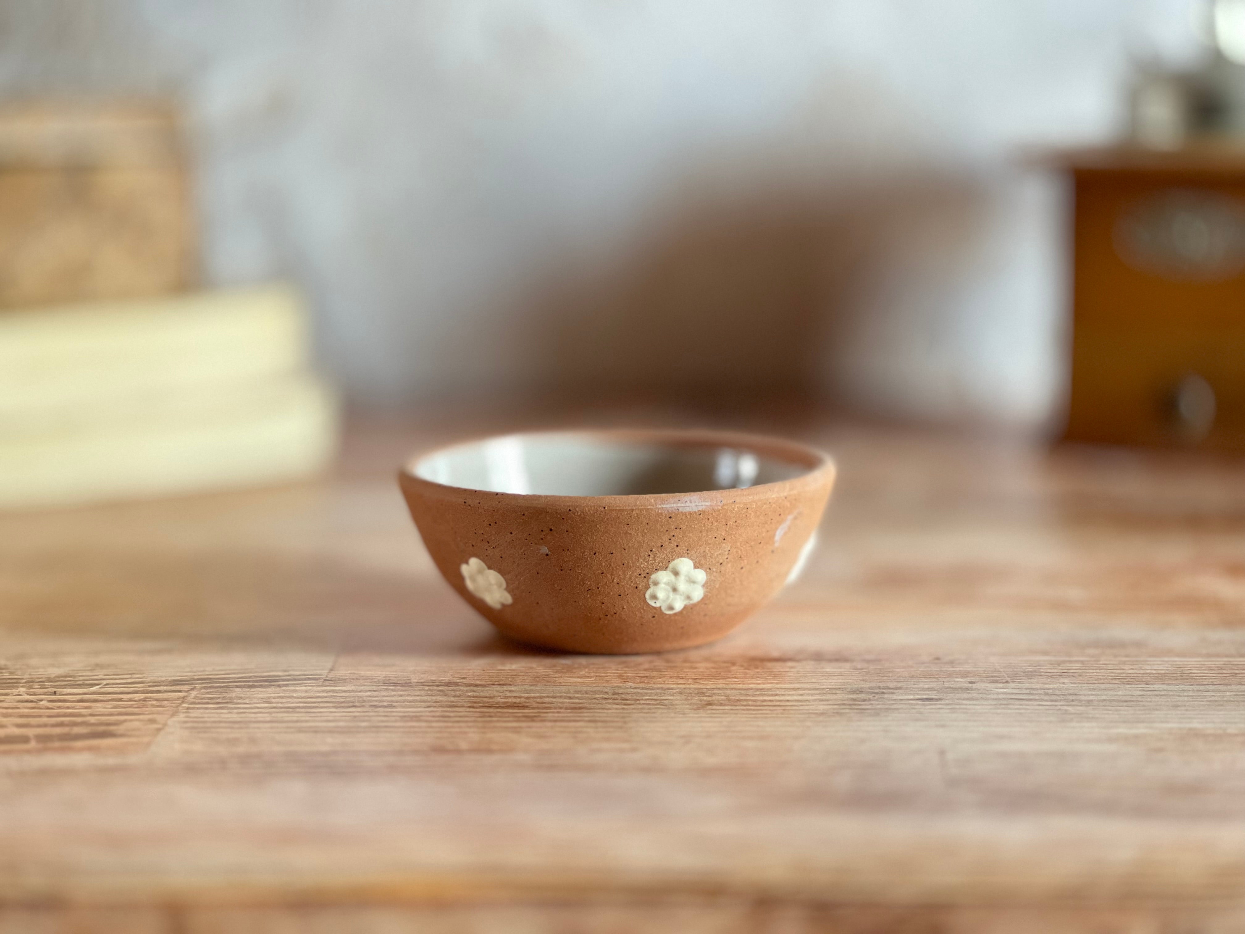 Wheel thrown in toasty brown stoneware and simply decorated with a delicate flower motif, these sink-side organizers are designed to keep cleaning brushes close at hand where they’re needed most.
