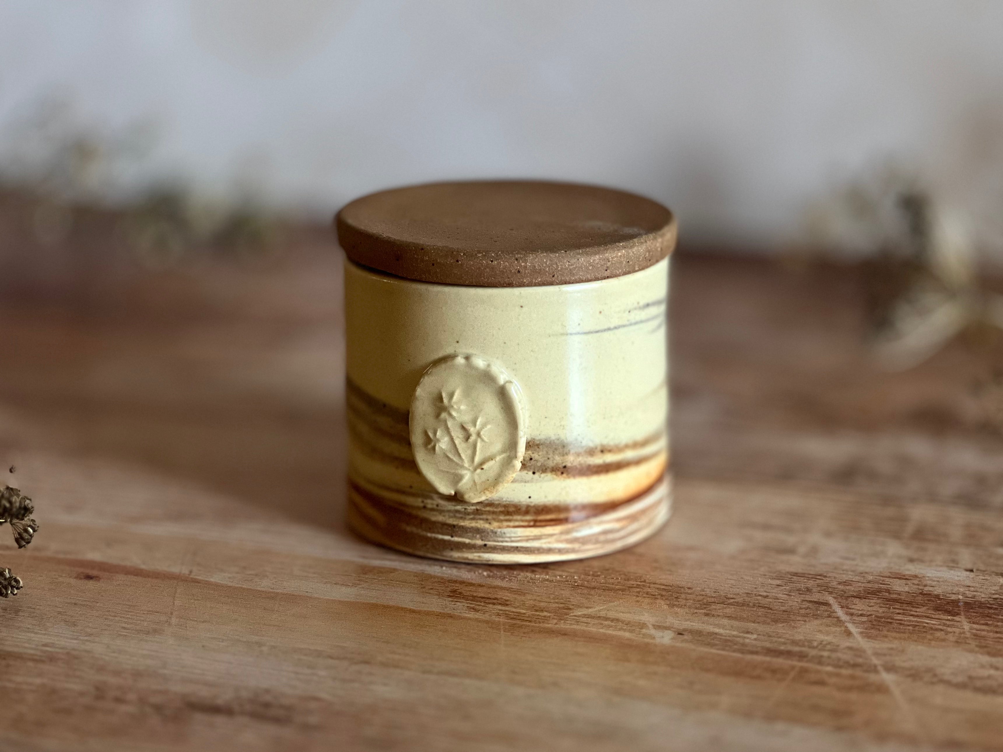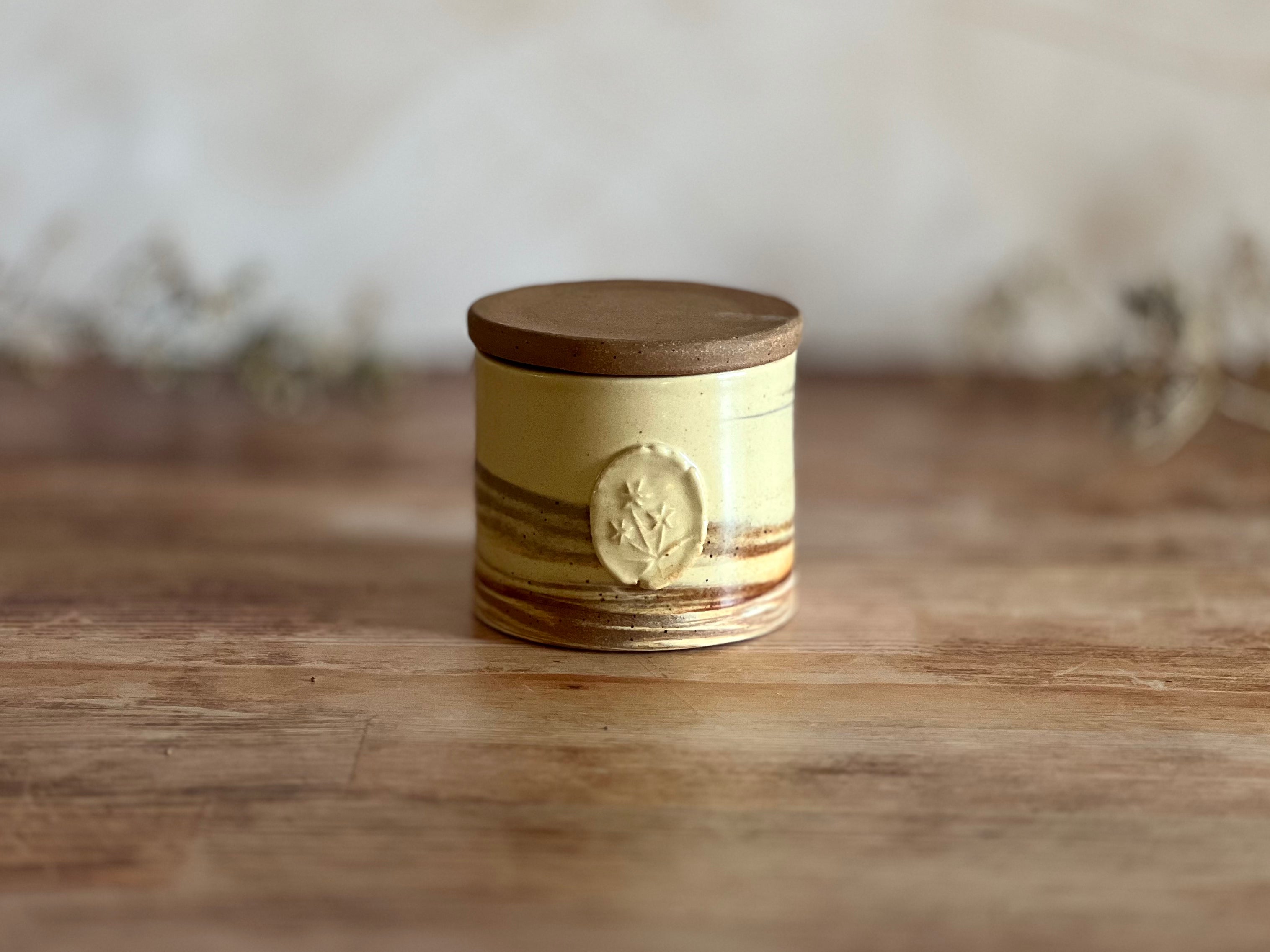 A memento of summer, sealed in clay and impressed with a tiny imagined, ephemeral blossom. This butter keeper carries a message of hope and growth, bringing both functionality and poetry to your table all year long.