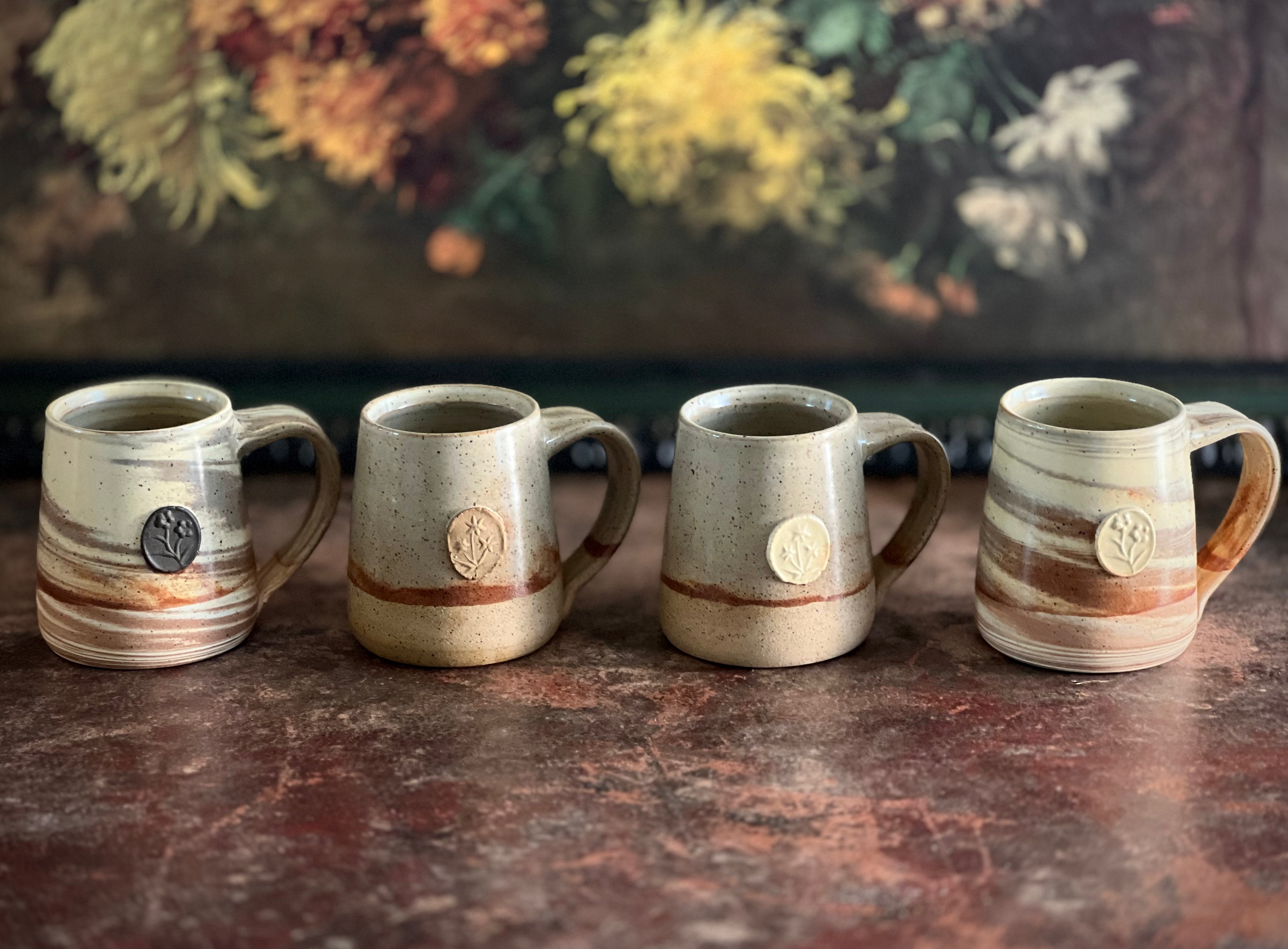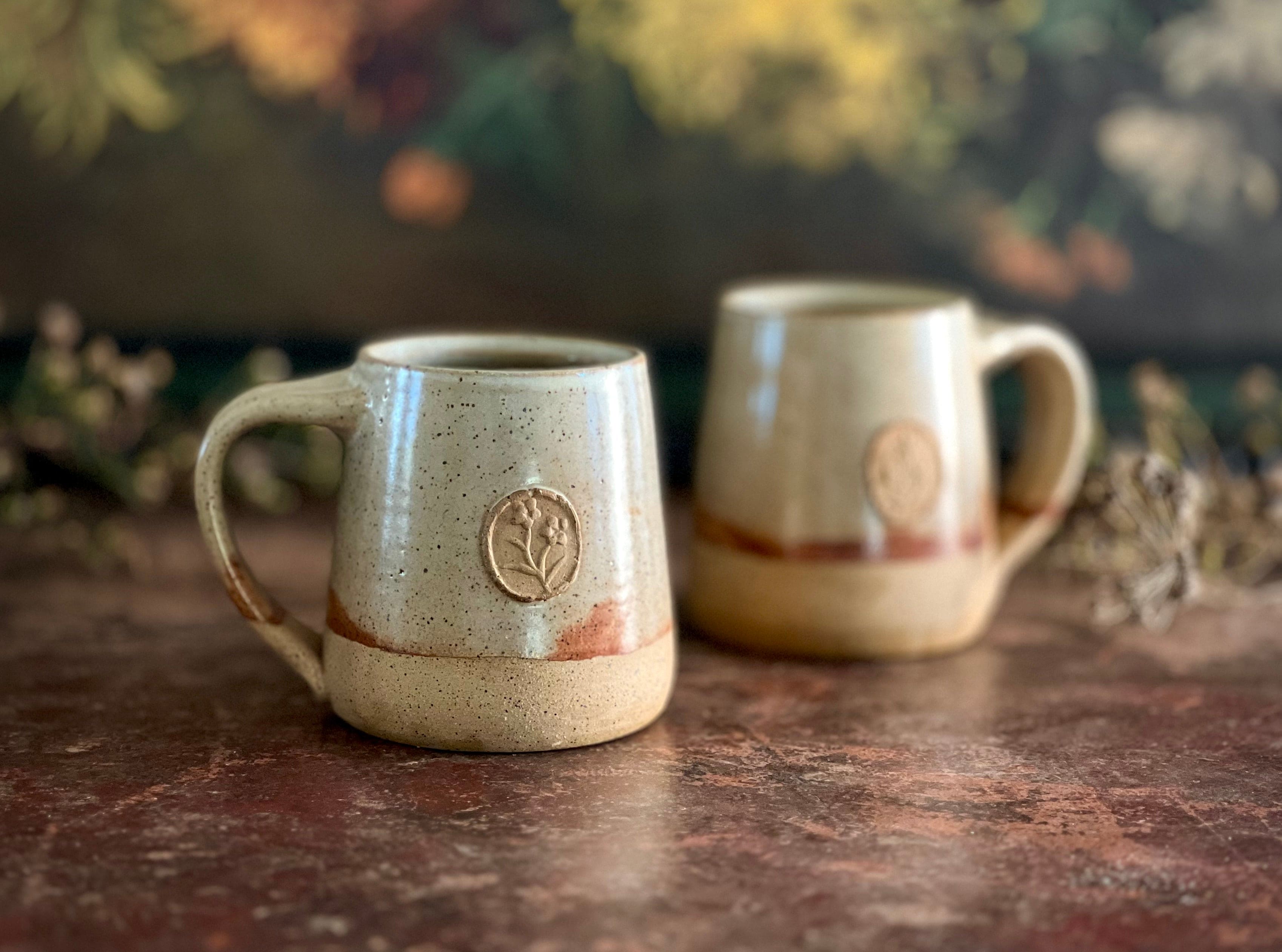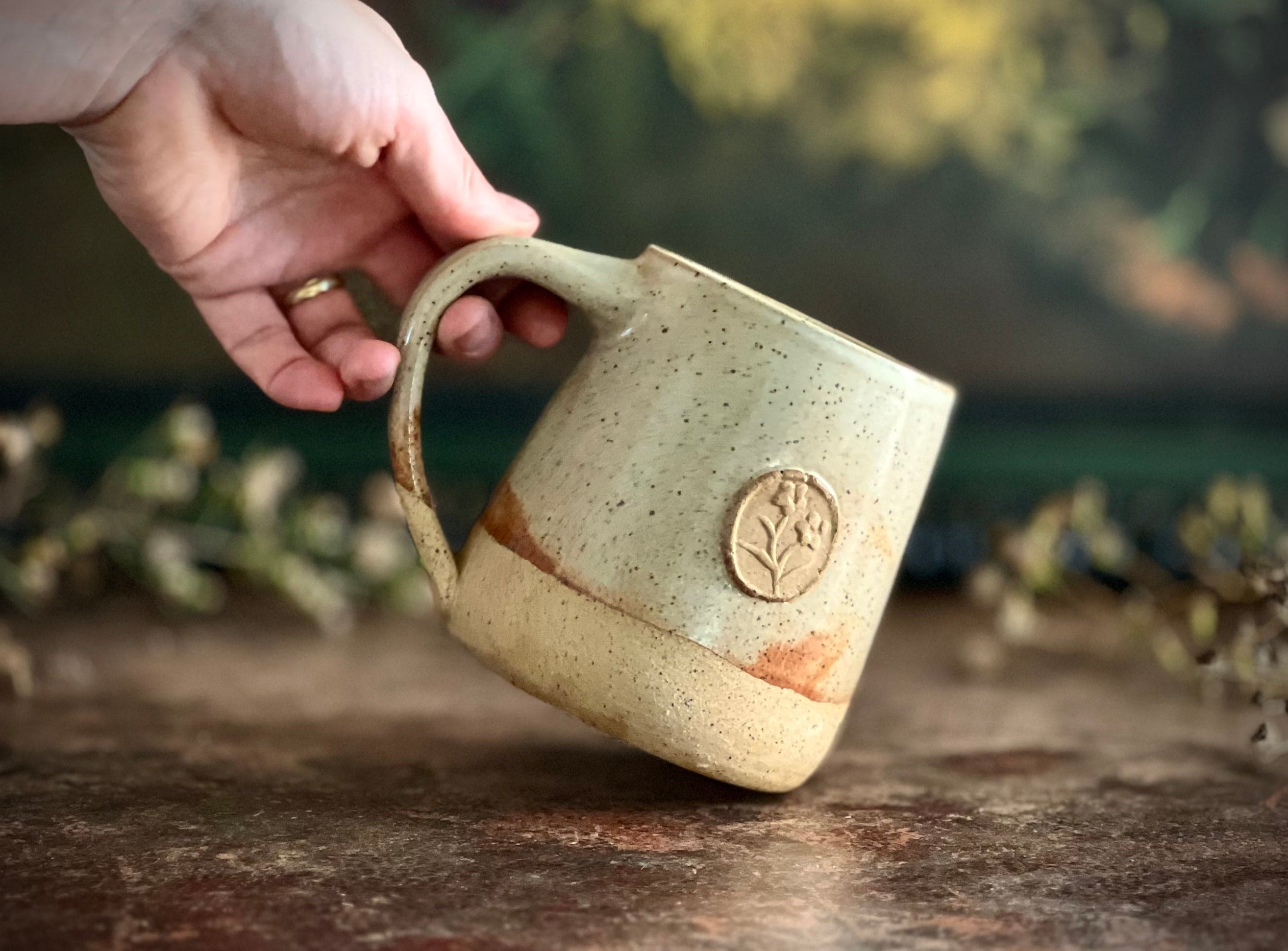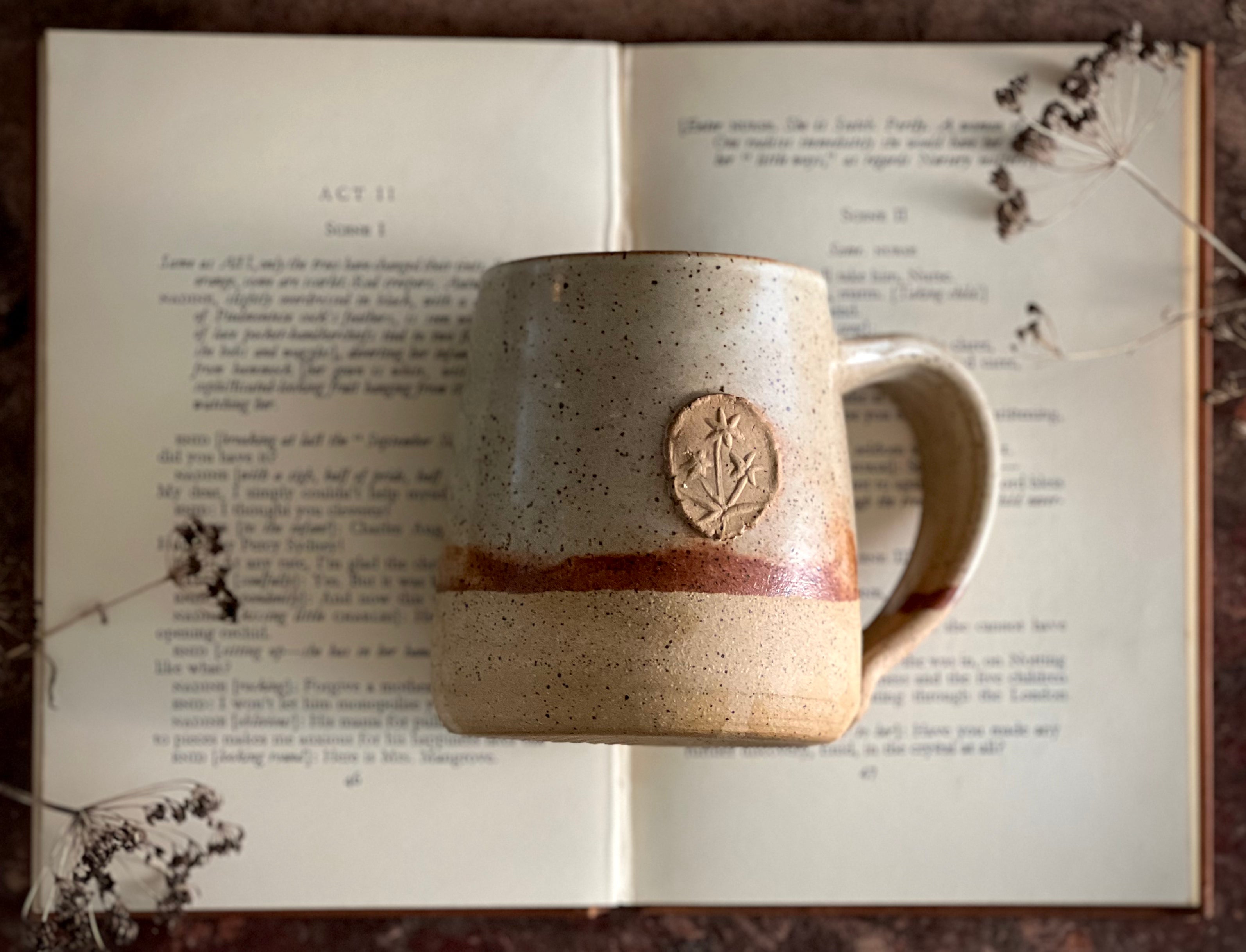 A memento of summer, sealed in clay and impressed with a tiny imagined, ephemeral blossom. This mug is a reminder of hope and growth that will stay with you all year.