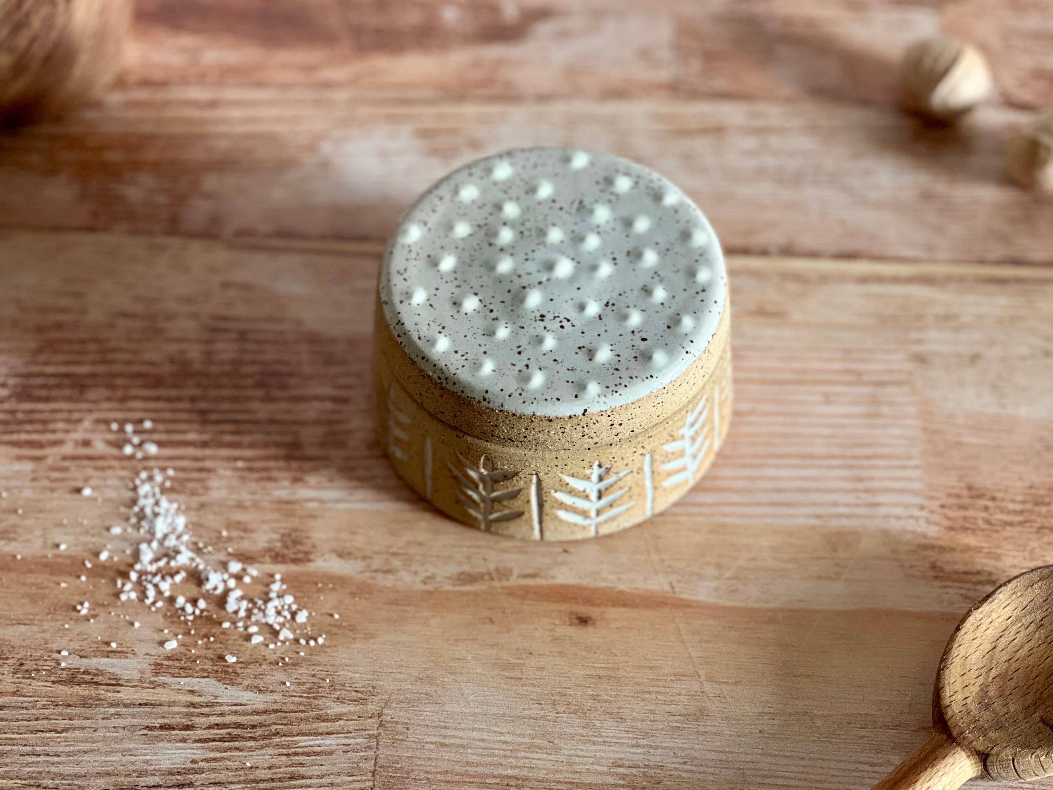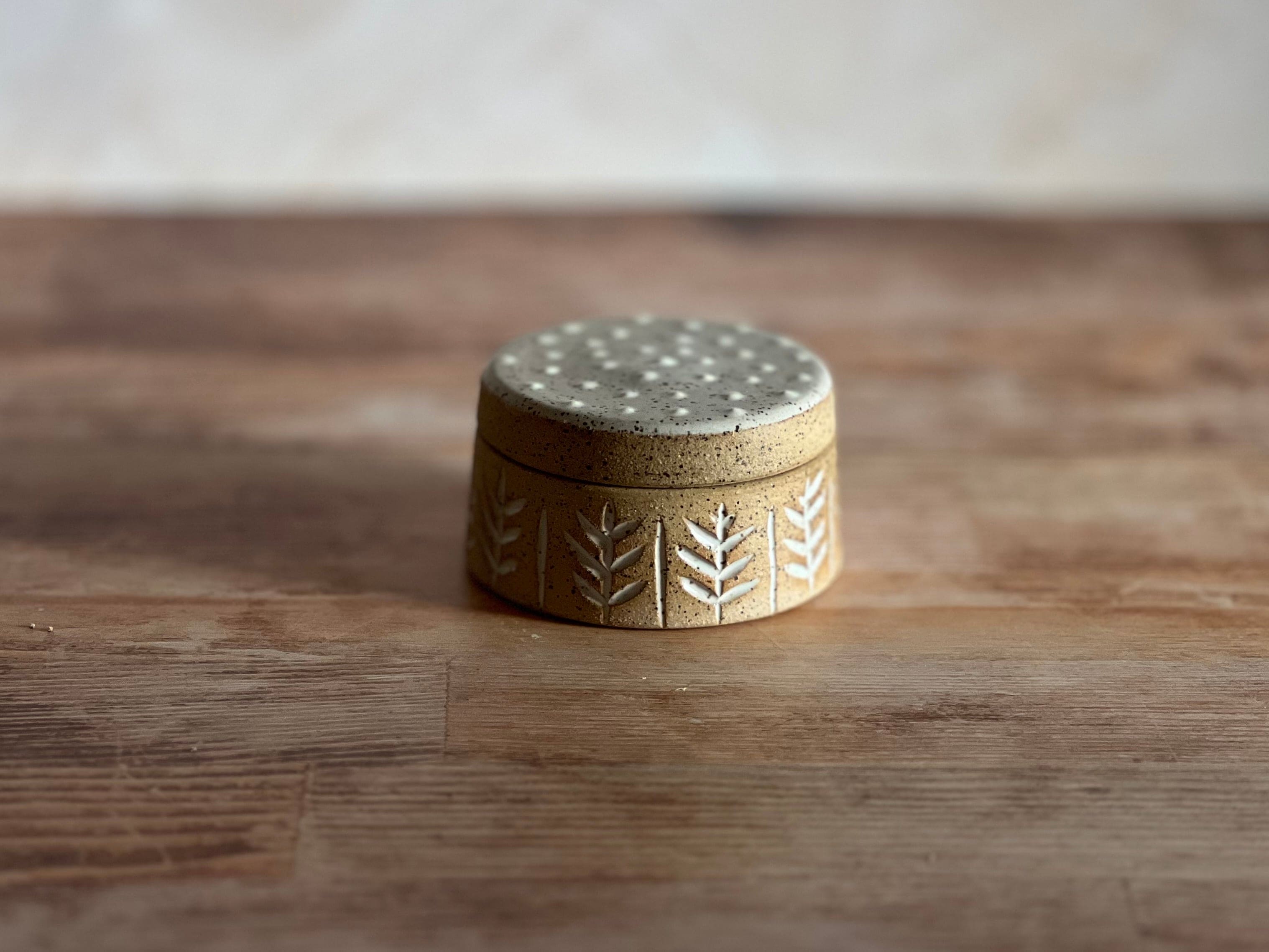 Store your salt, stash your jewels, stow your loose change - this is a handy little ceramic box that will do a variety of duties and look very nice while doing it.