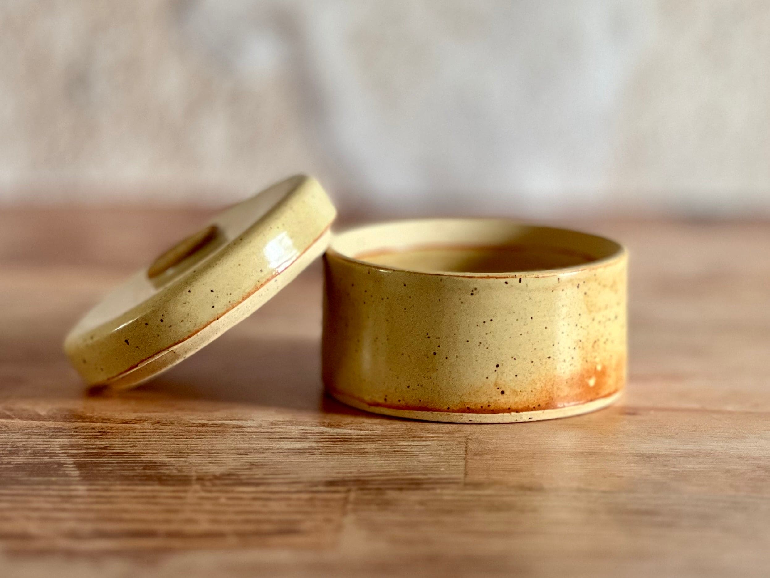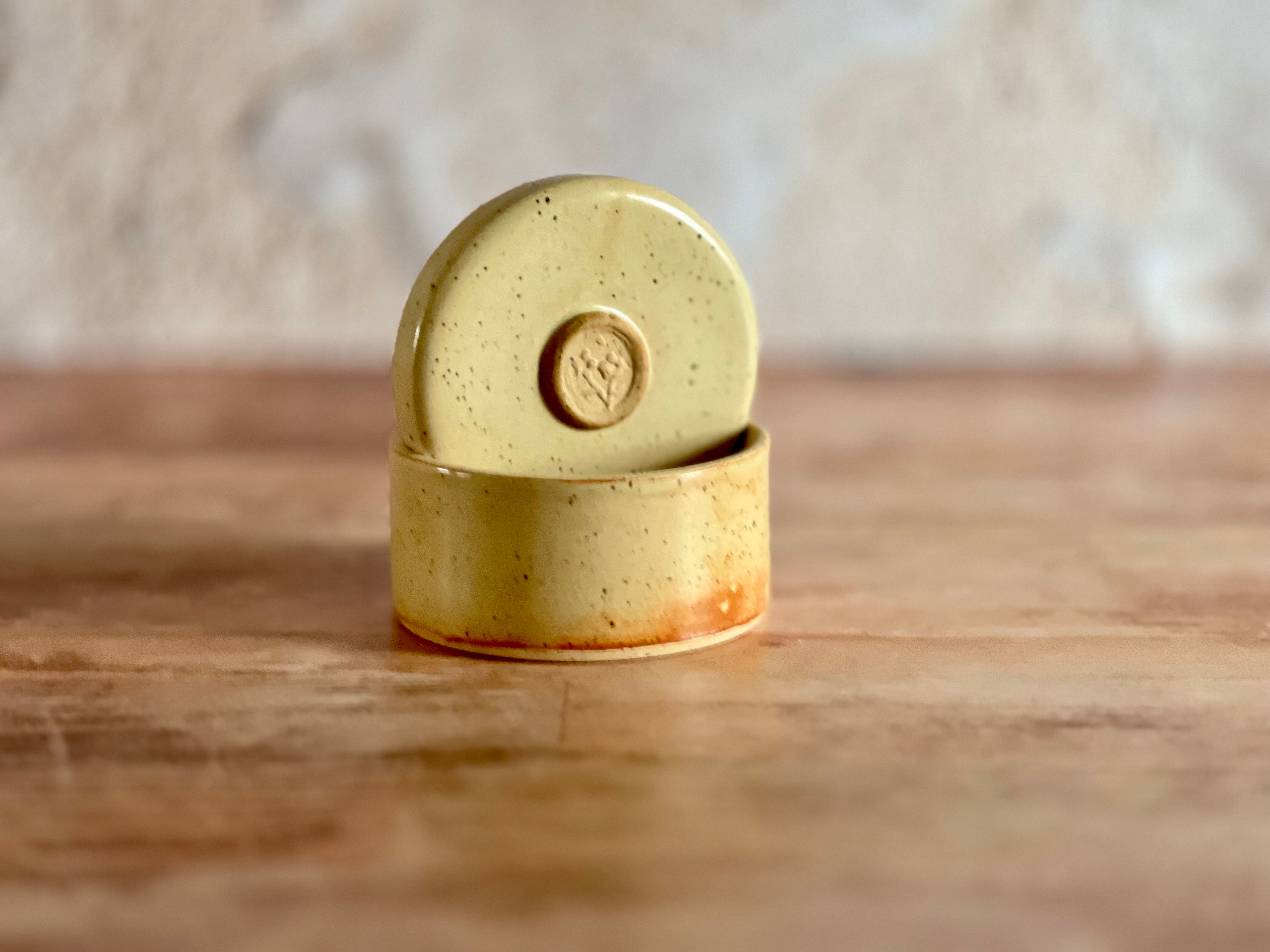 With soft speckled glaze and a gently rounded form, these lidded salt cellars bring a bit of charm to your countertop or shelf. Some are carved, others stamped with botanical medallions—each one unique, with a style that feels both homey and considered.