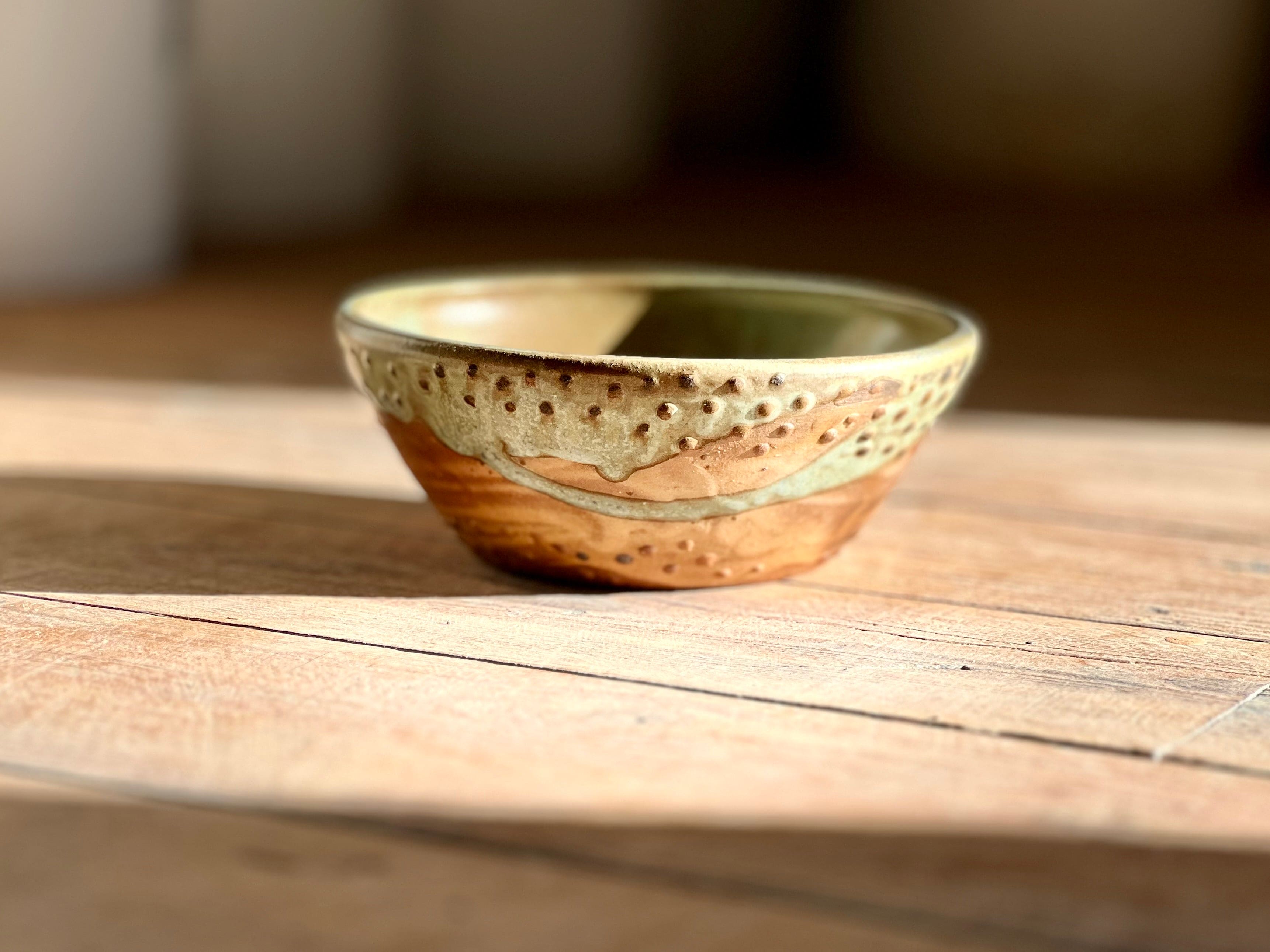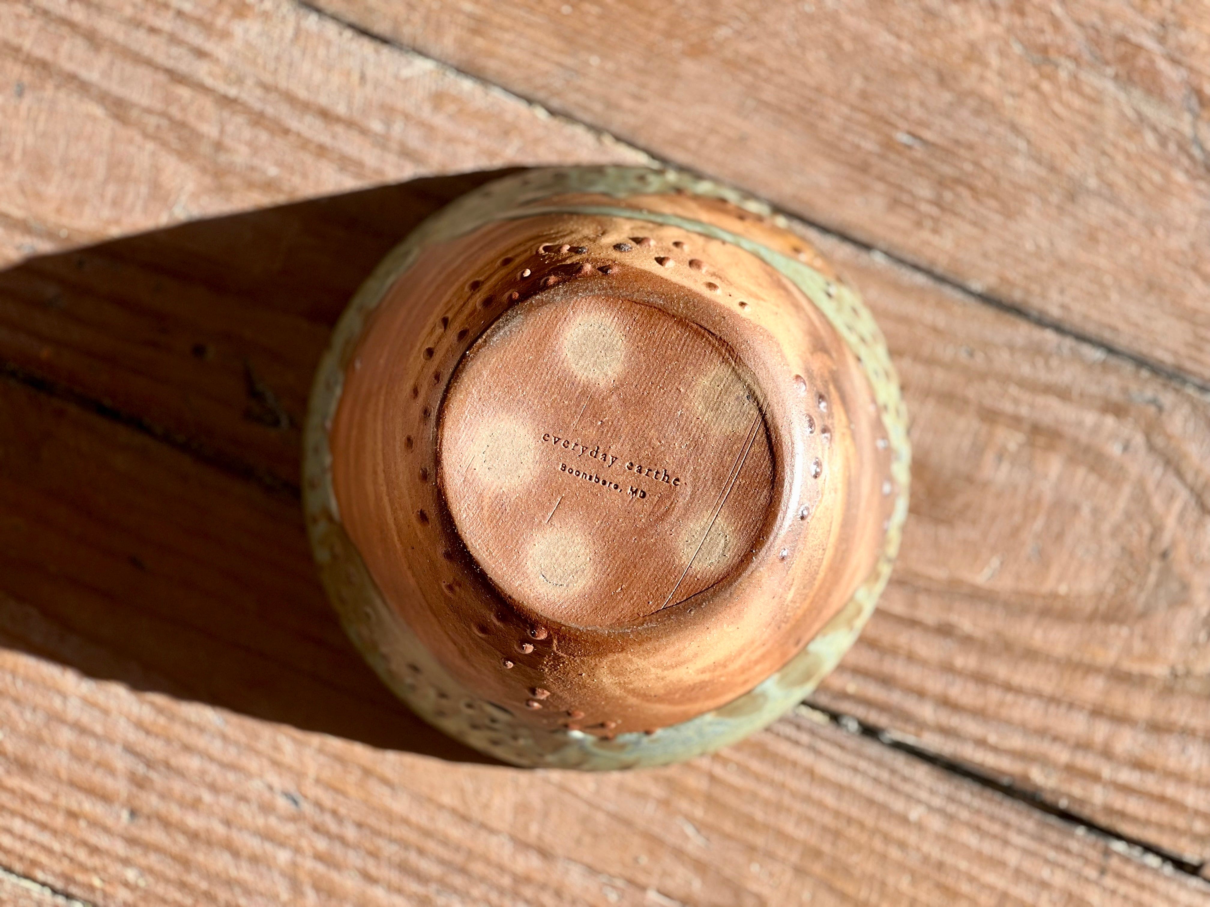 Generously decorated with a texture that is both beautiful and engaging, this wood fired bowl is guaranteed to see frequent use. Ours never sit on the shelf for long - they are either in the dishwasher or in our hands, holding something warm, hearty, and delicious.