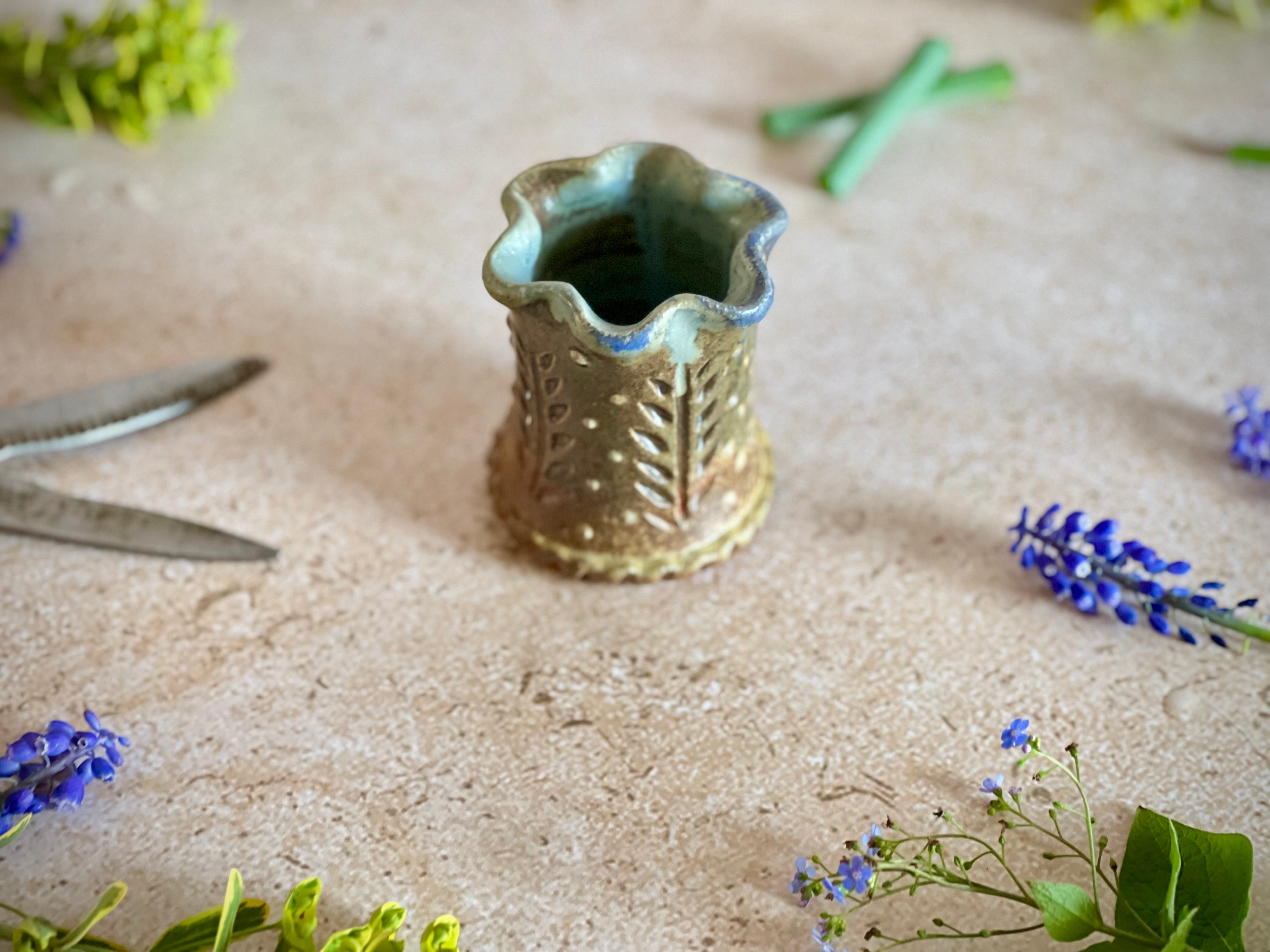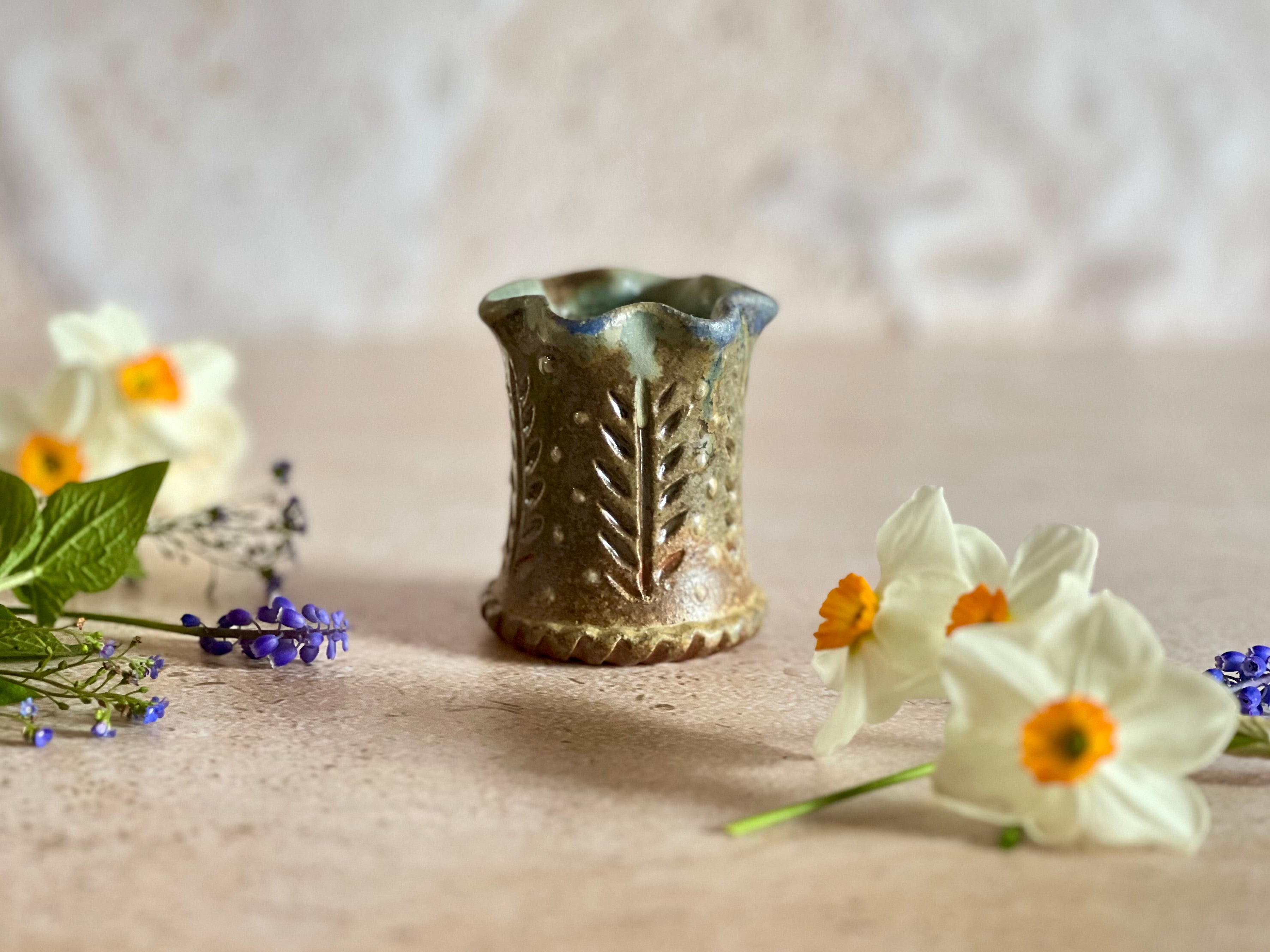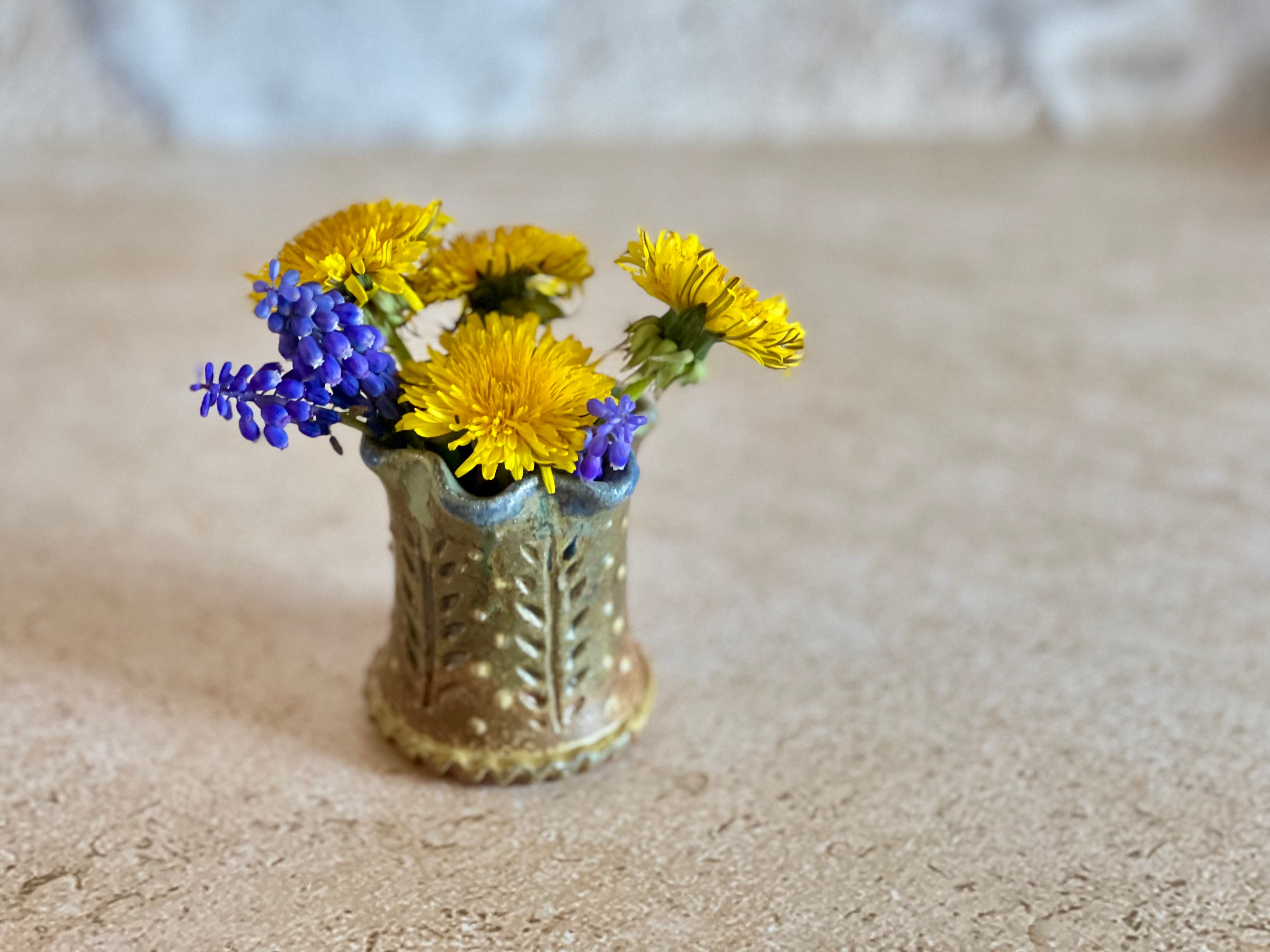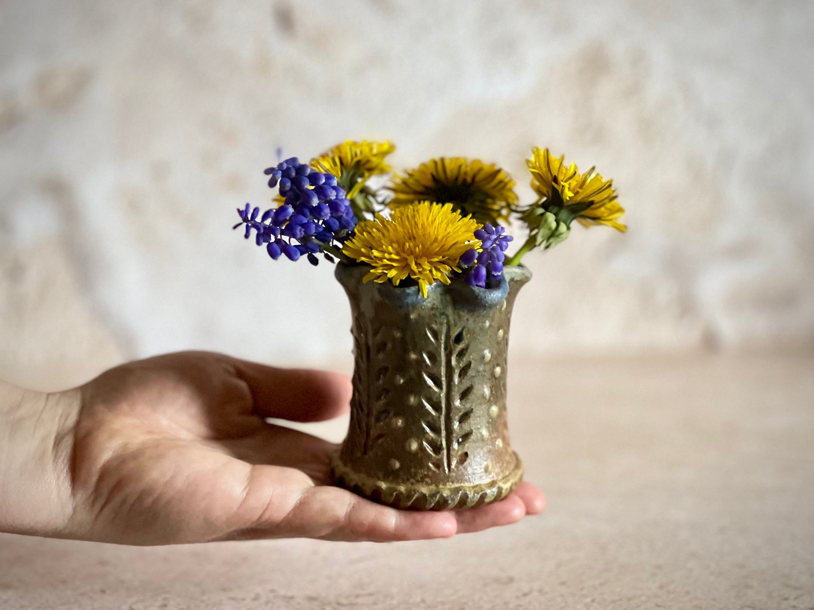 Each of these petite bud vases is one of a kind - formed on the wheel with a playful, intuitive approach and finished with the magic of the wood-firing process. Their size makes them perfect for holding just a stem or two - an easy way to bring a touch of nature to any corner of your home, from windowsill to nightstand. Earthy, textural, and richly varied, each vase holds both fresh and dried stems and serves just as beautifully on its own.