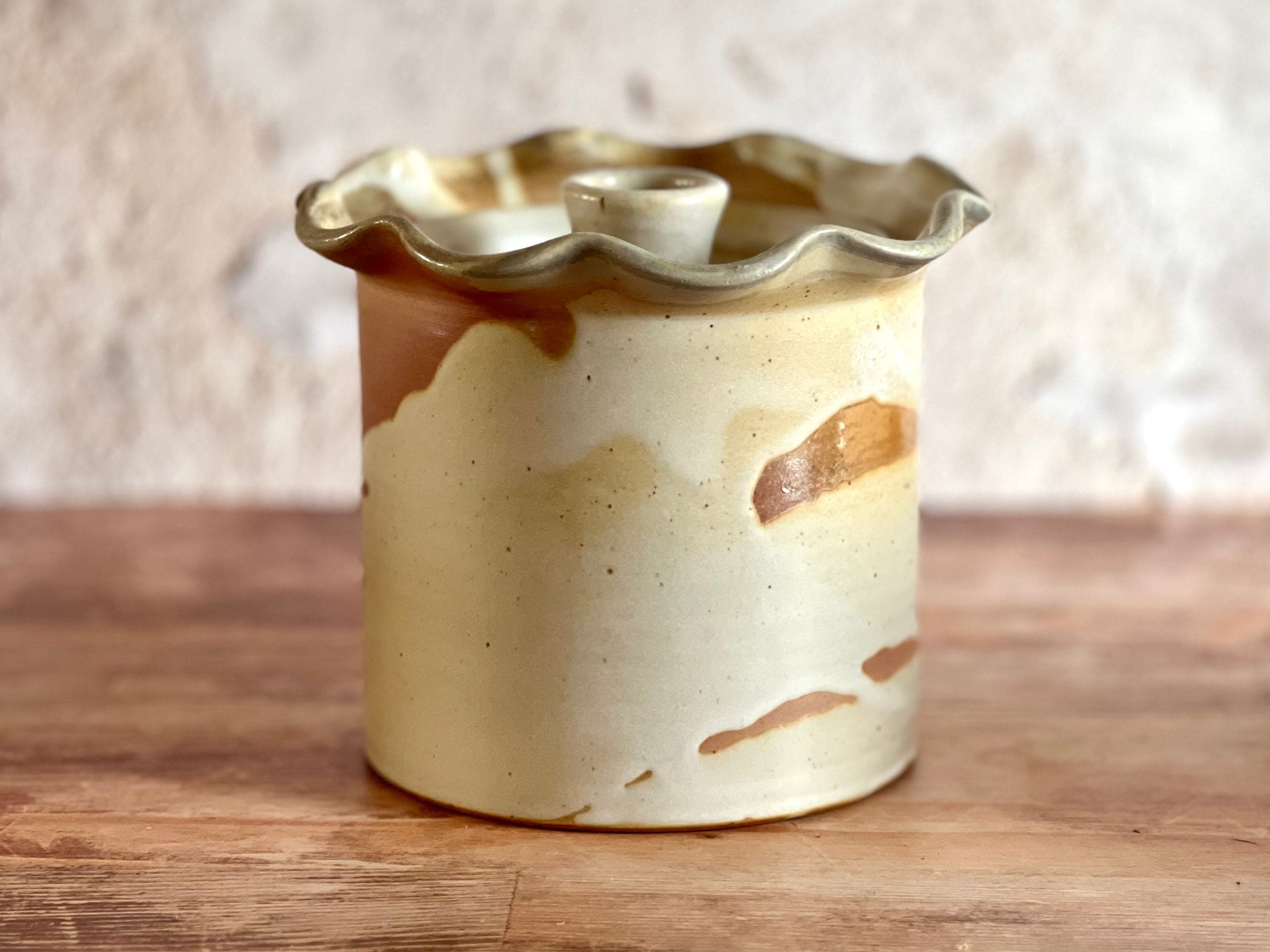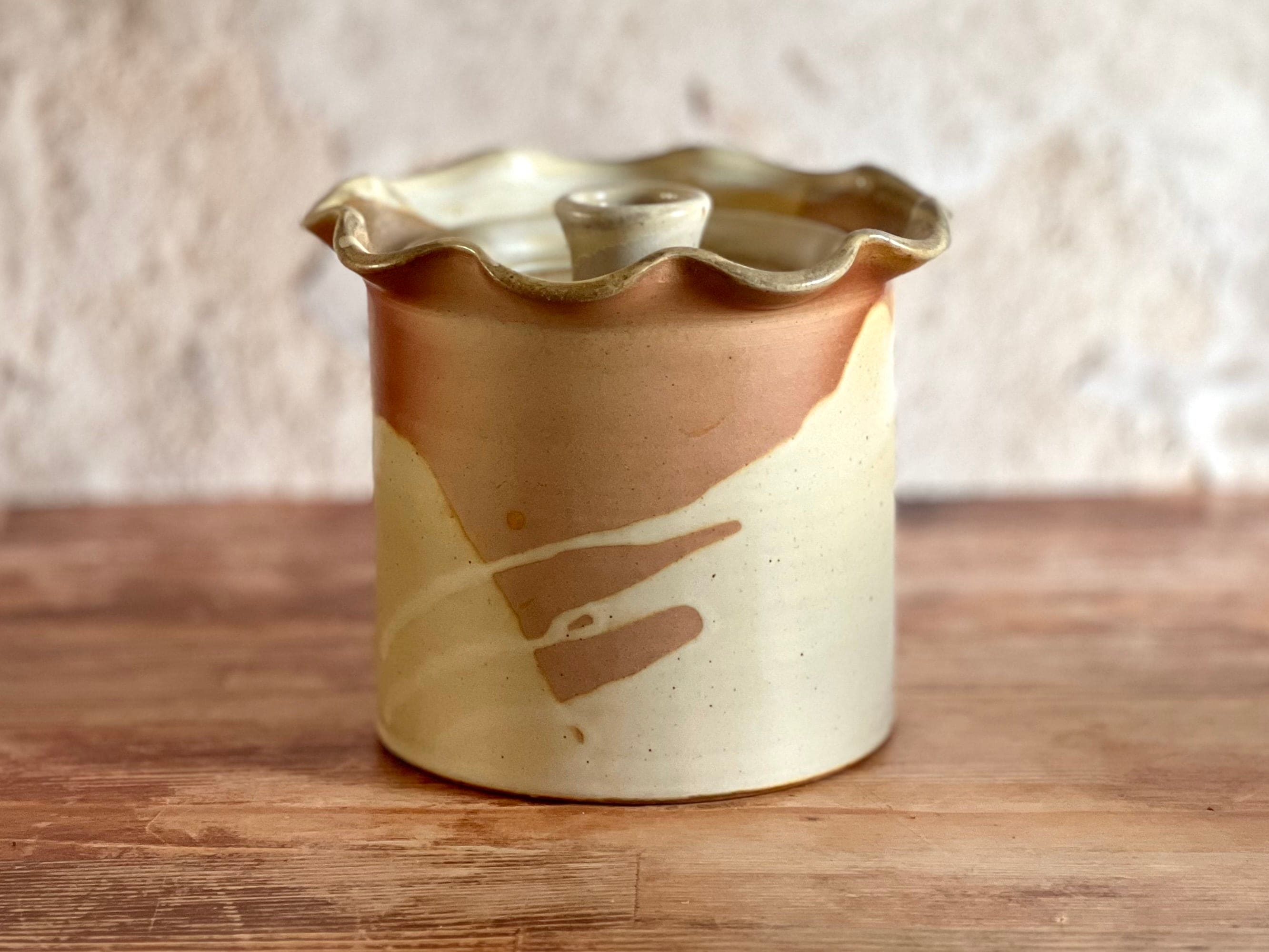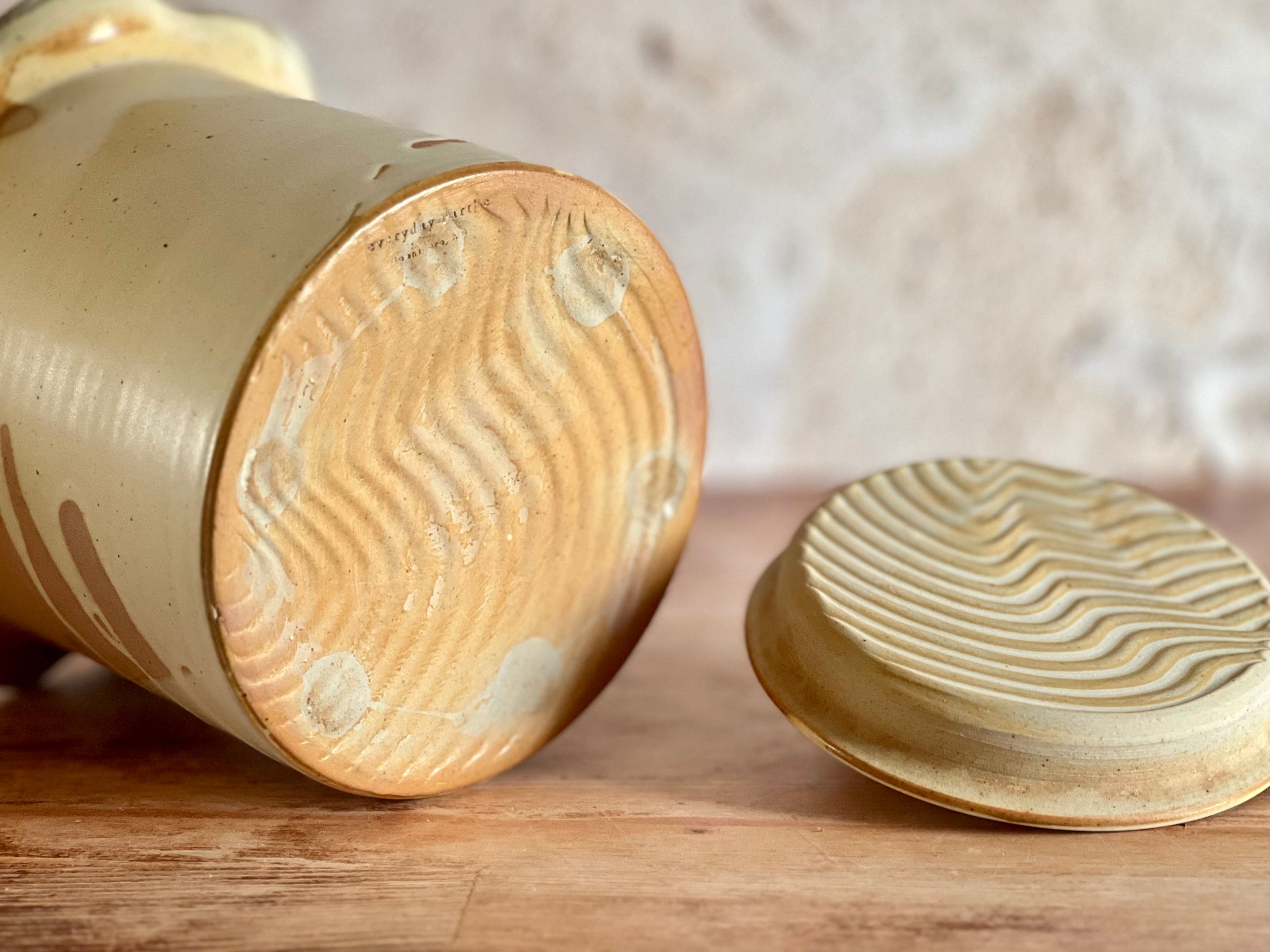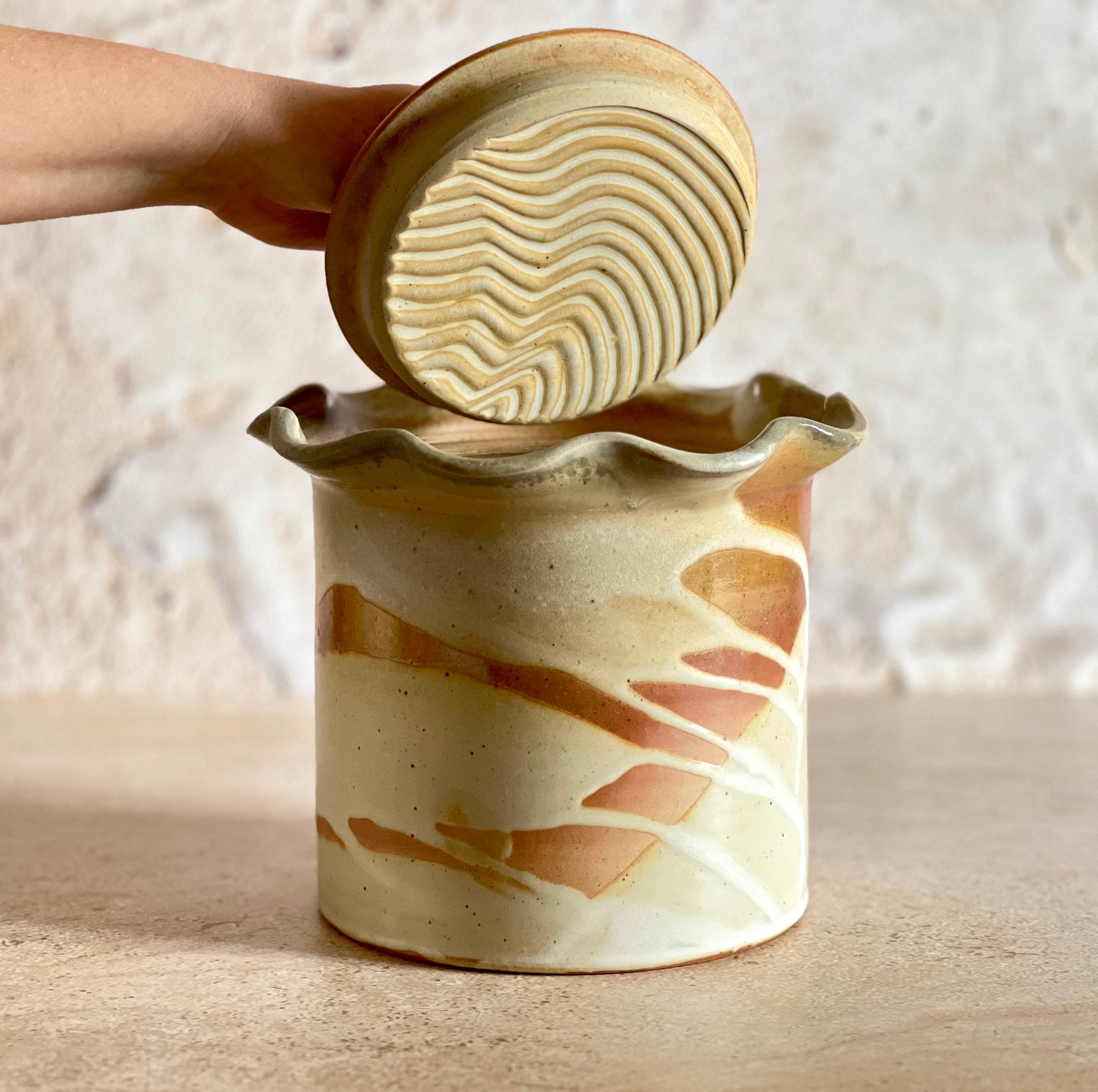 Designed to look beautiful and work hard, this jar is ideal for storing flour, granola, cookies (for humans or 4 legged friends), fermenting veggies…hiding scrunchies, remotes, charging cords, soaps, hand towels…the uses are endless. The form balances utility with subtle ornament, making it as display-worthy as it is practical.