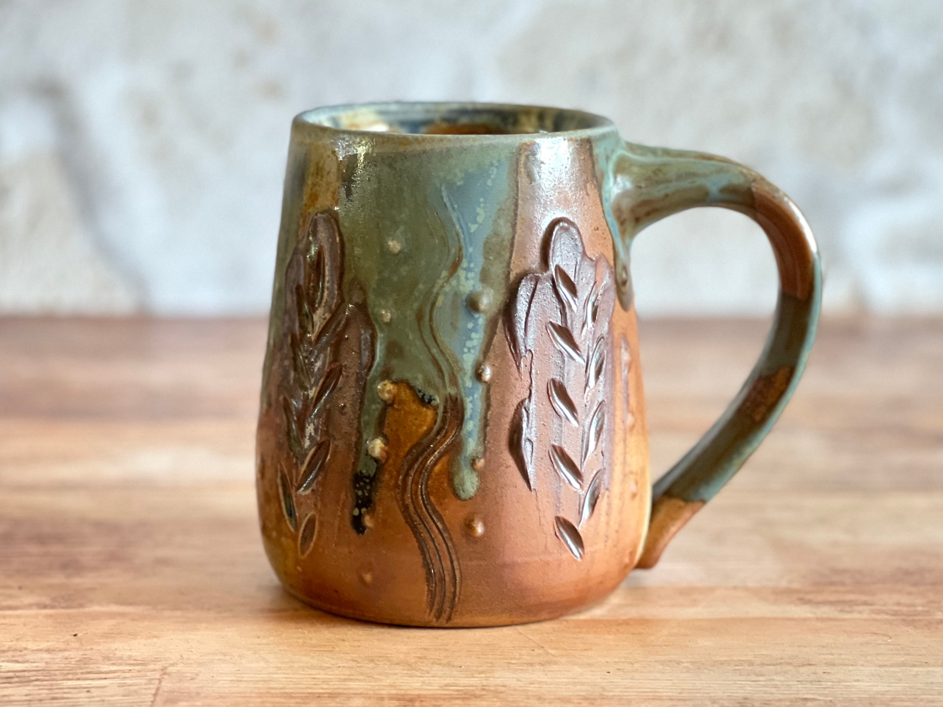 Each of these mugs is one of a kind, shaped by hand and finished in the wood kiln. No two are alike - each bears its own patterns of flame, glaze, and texture, shaped by both the making and the fire. Sturdy in the hand and made to be used, these pieces bring a little something special to the everyday.