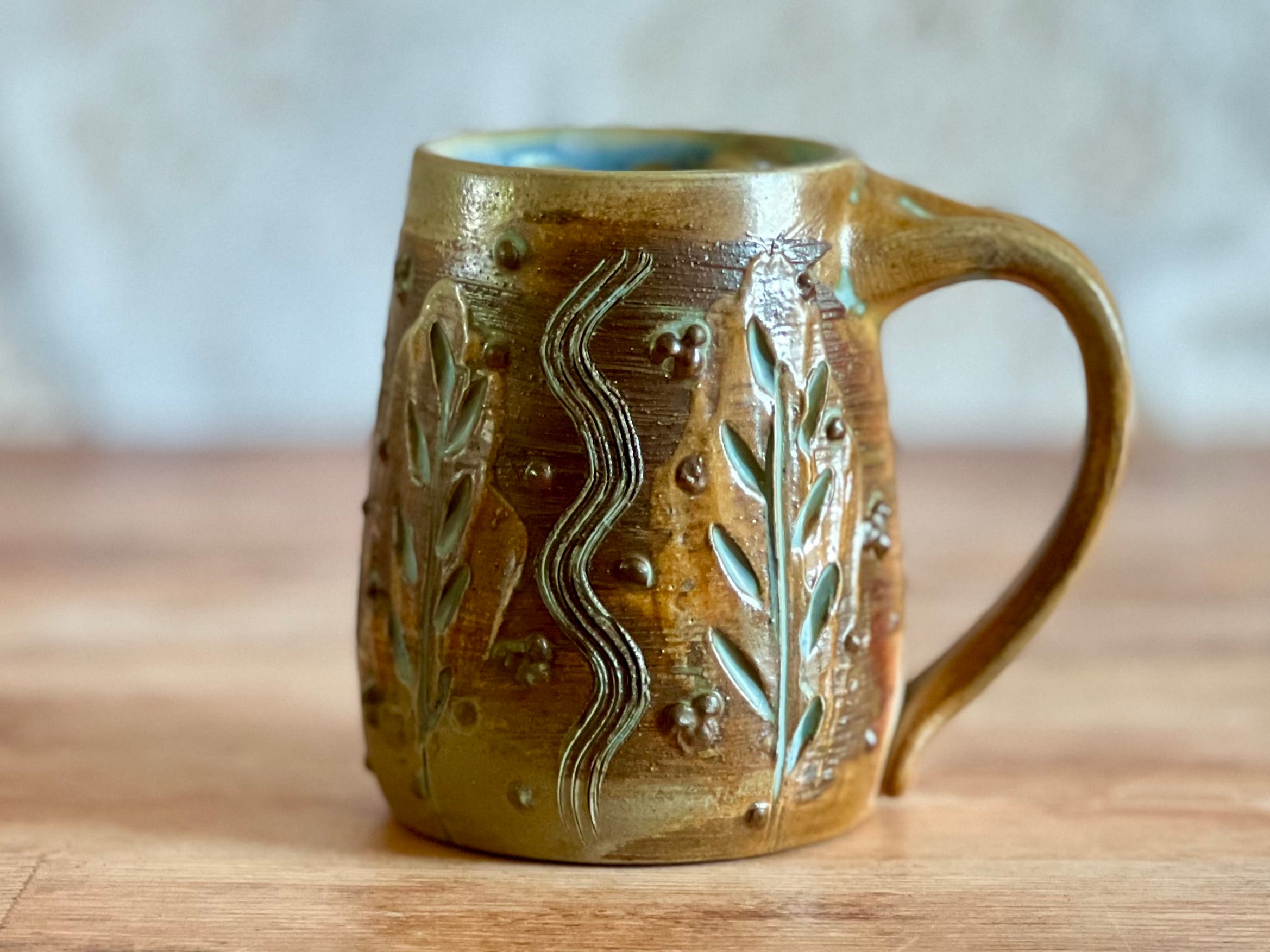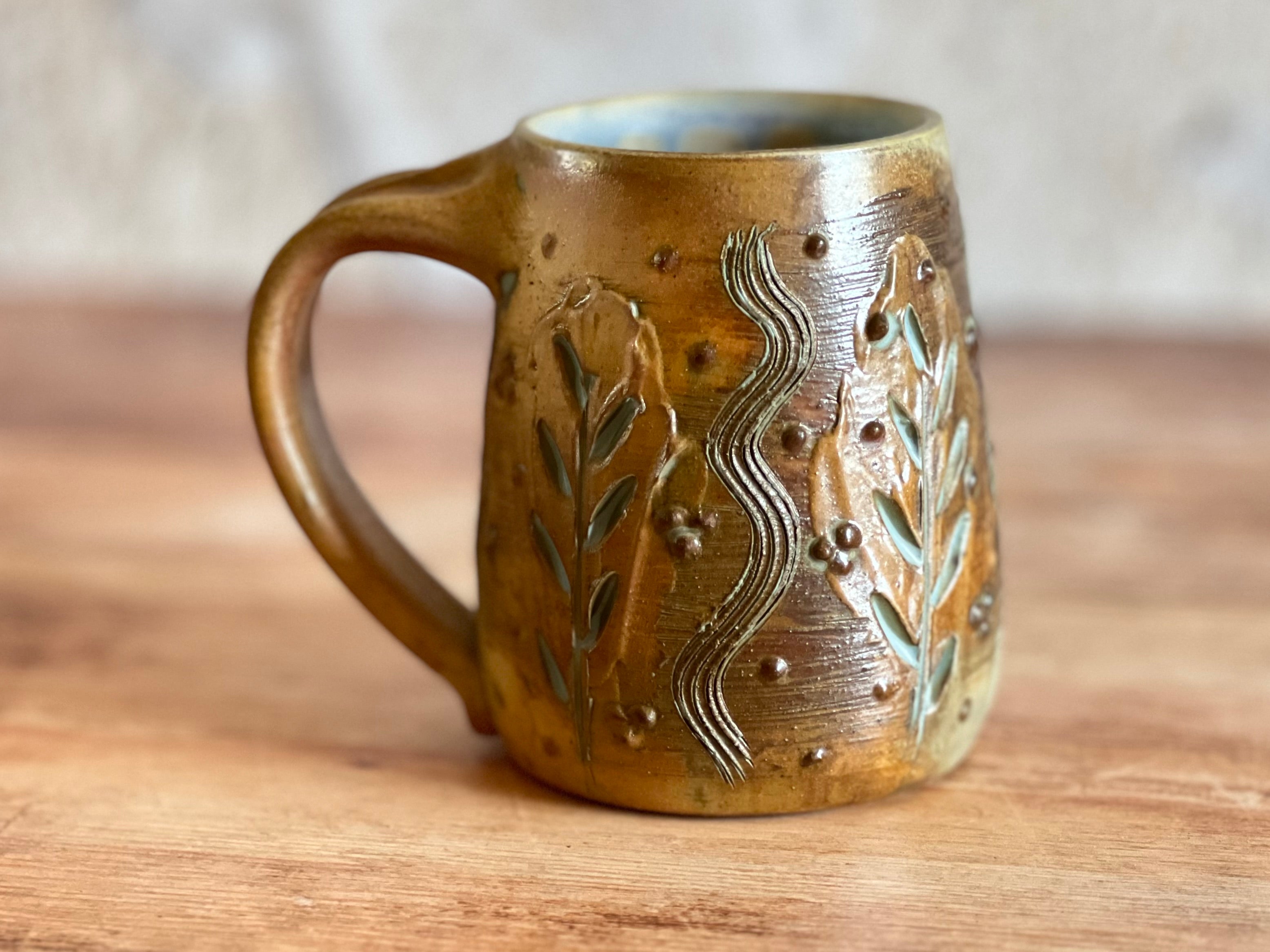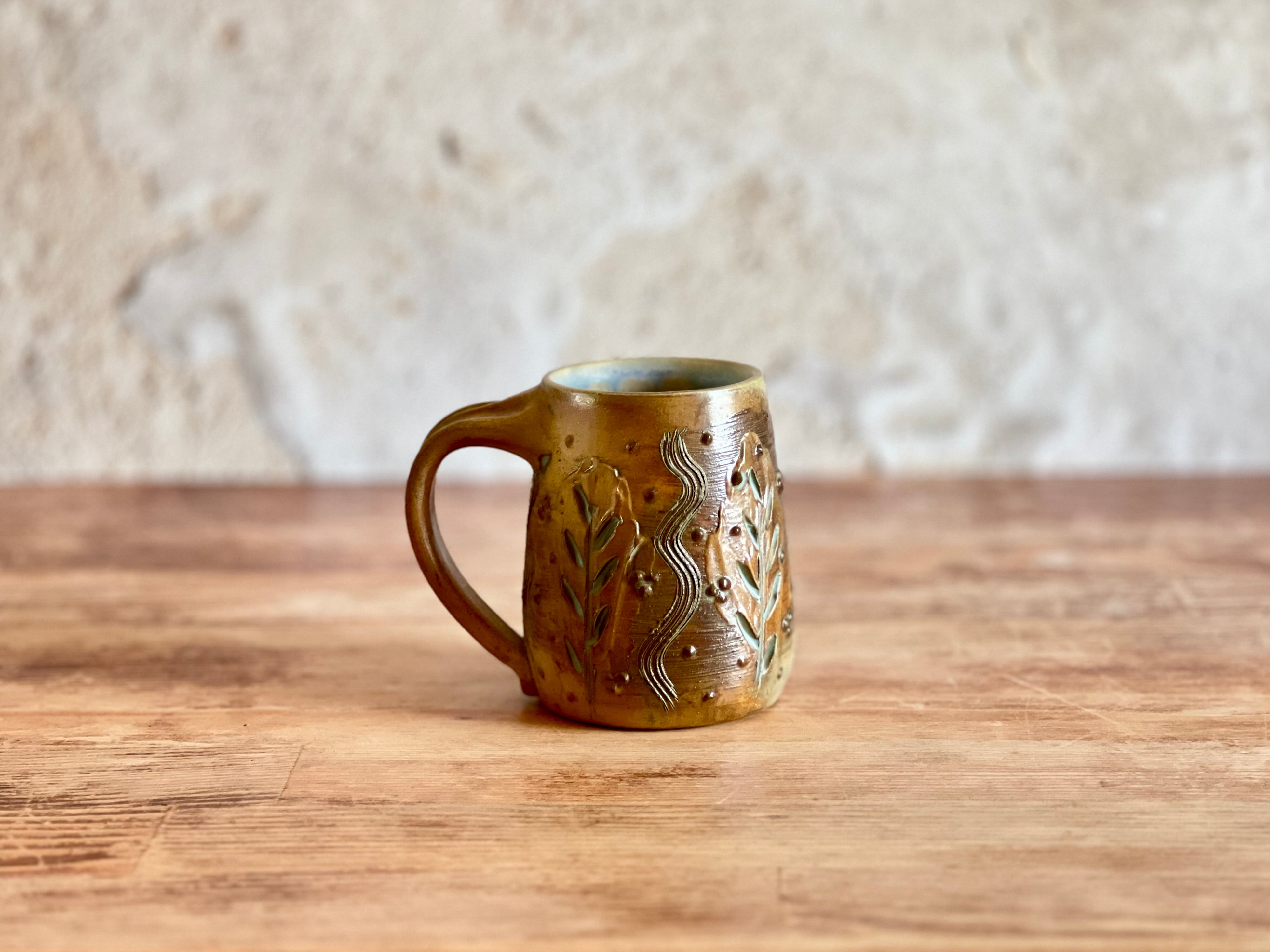 Each of these mugs is one of a kind, shaped by hand and finished in the wood kiln. No two are alike - each bears its own patterns of flame, glaze, and texture, shaped by both the making and the fire. Sturdy in the hand and made to be used, these pieces bring a little something special to the everyday.
