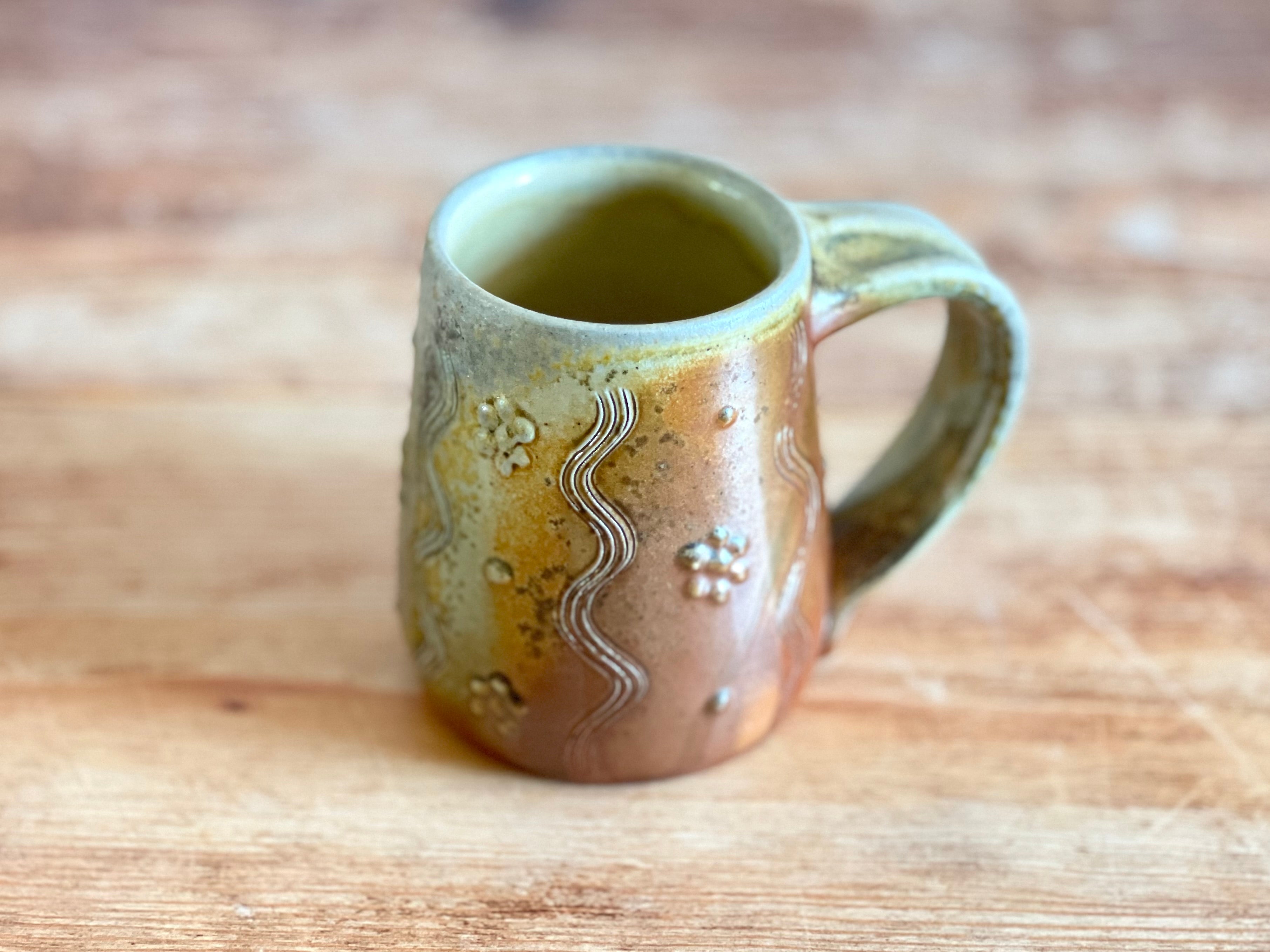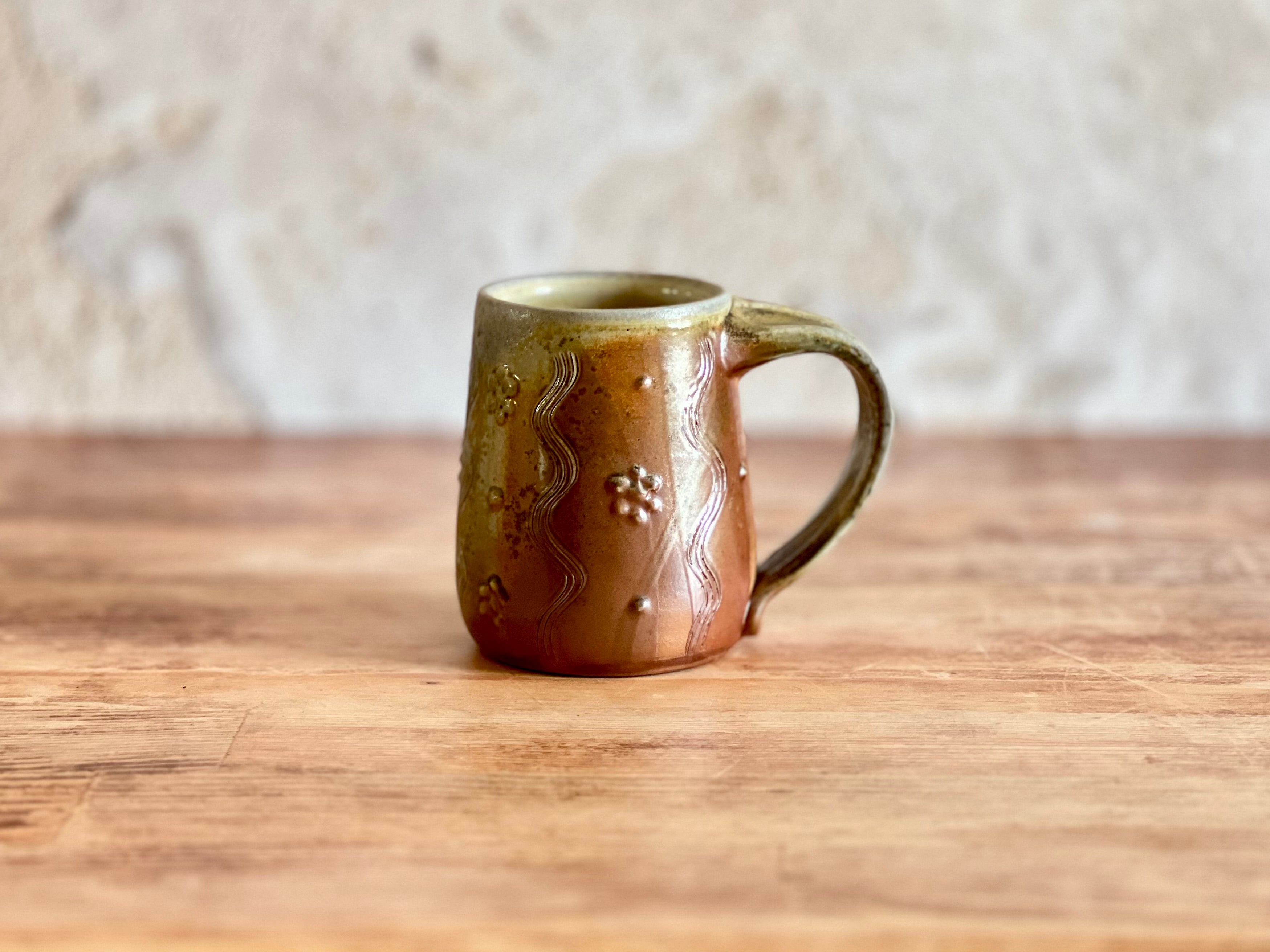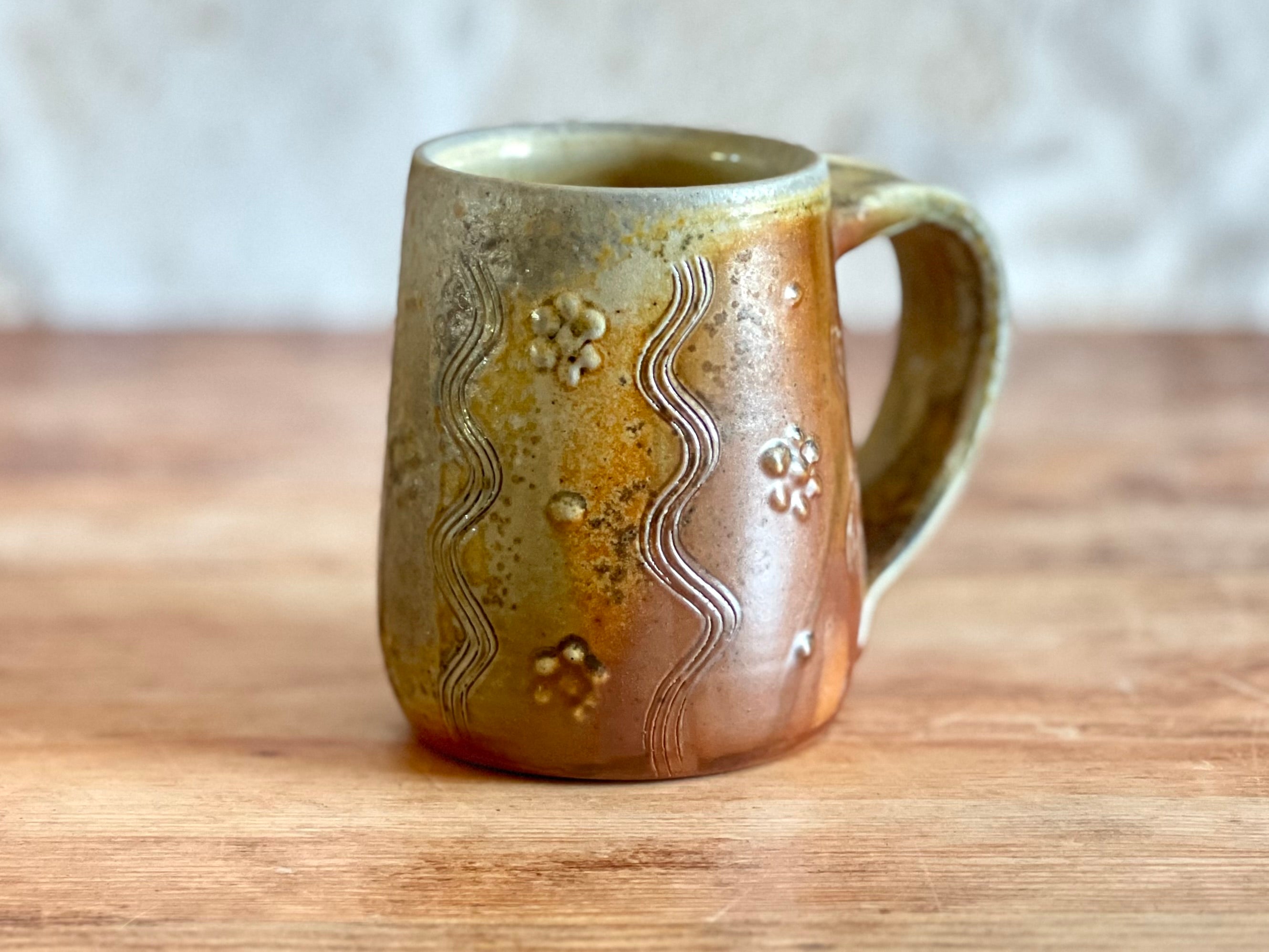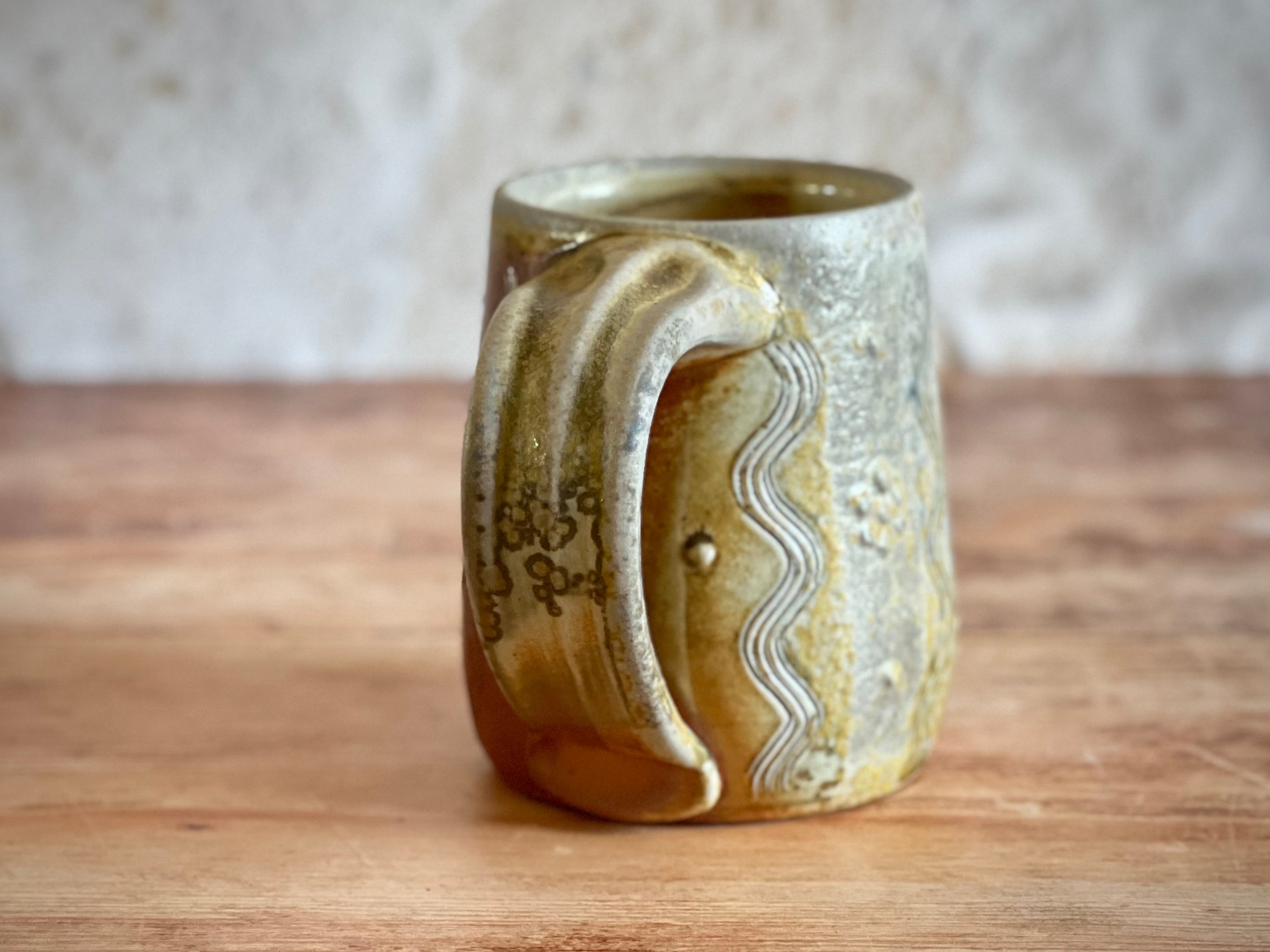 Each of these mugs is one of a kind, shaped by hand and finished in the wood kiln. No two are alike - each bears its own patterns of flame, glaze, and texture, shaped by both the making and the fire. Sturdy in the hand and made to be used, these pieces bring a little something special to the everyday.