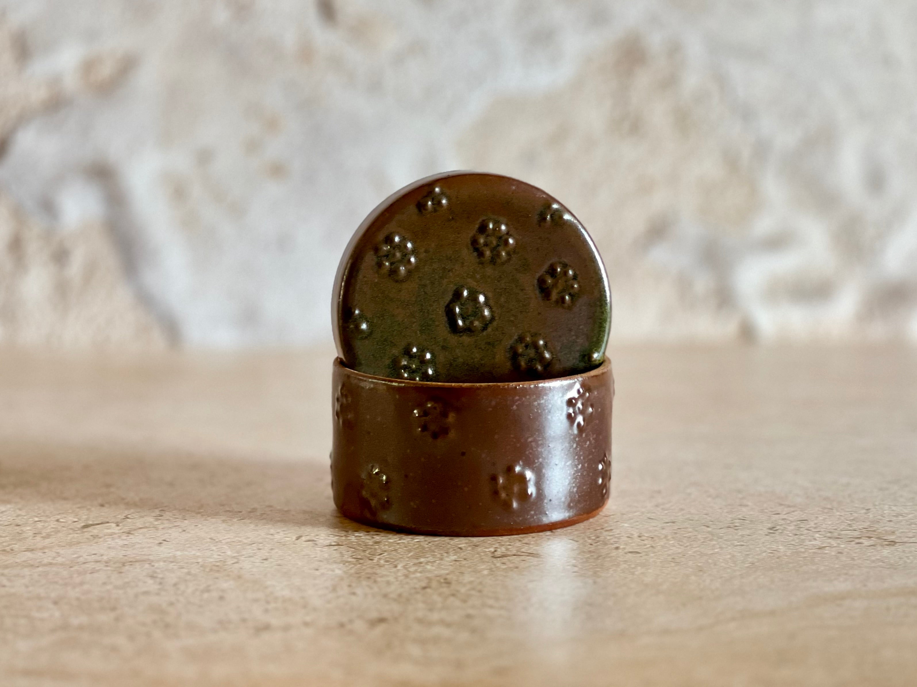 These one-of-a-kind lidded salt cellars are small but impactful, made to bring a little artistry to your counter and be used daily. Each one is wheel thrown, hand decorated, and finished in the wood kiln where flame, ash, and atmosphere bring out rich, varied surfaces - no two are alike. Whether holding flaky sea salt, keepsakes, or a special spice blend, they offer a tactile, grounded presence in the kitchen.
