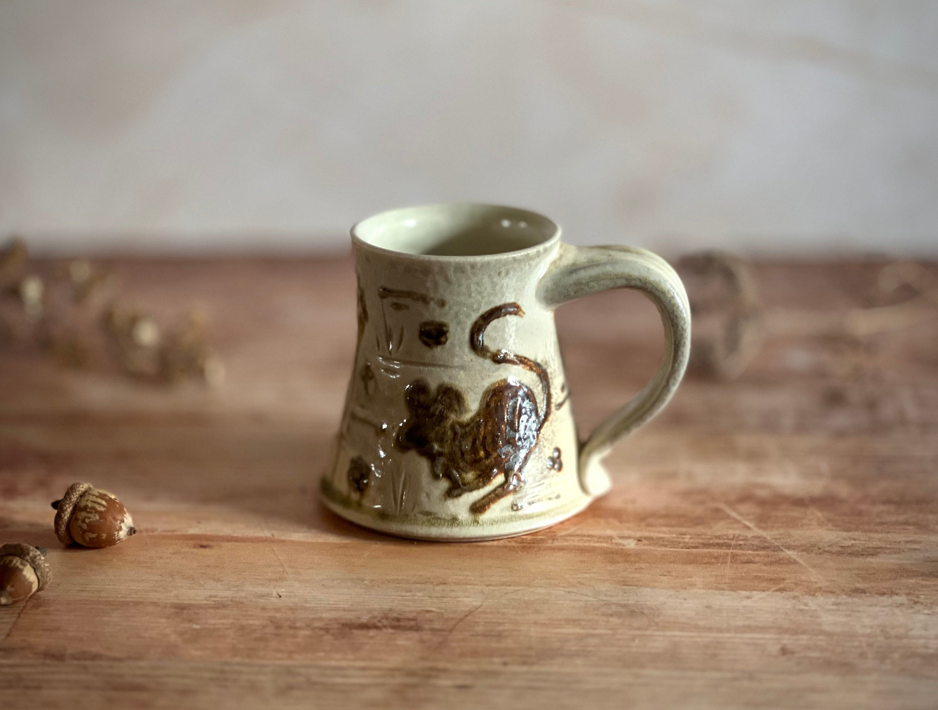 Hand decorated with whimsical woodland creatures made out of clay, these were heavily inspired by ancient Gallo-Roman barbotine cups that I’ve got a keen fascination with. Only one of each creature available.